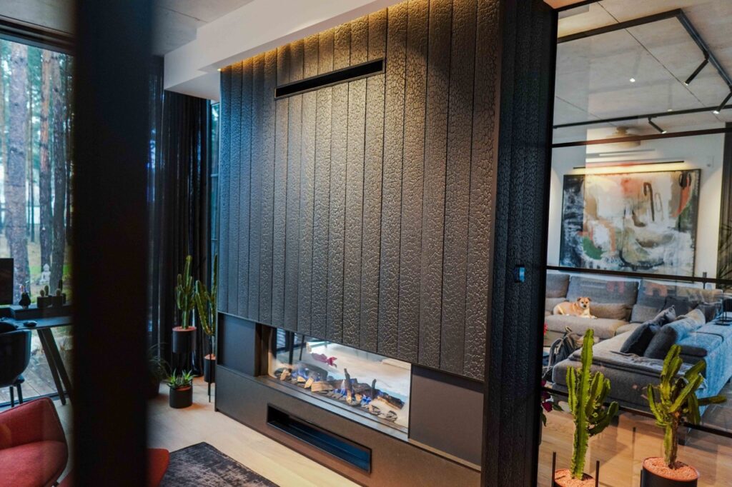 Die in der Variante EICHE gefertigtes Holzprofil wird verkohlt und dann imprägniert. Dadurch entsteht eine stark verkohlte Holzstruktur mit charakteristischen Rissen (die sogenannte “Alligatorenhaut”). Verkohlte Eichenholzprofile sind für Innenräume bestimmt.