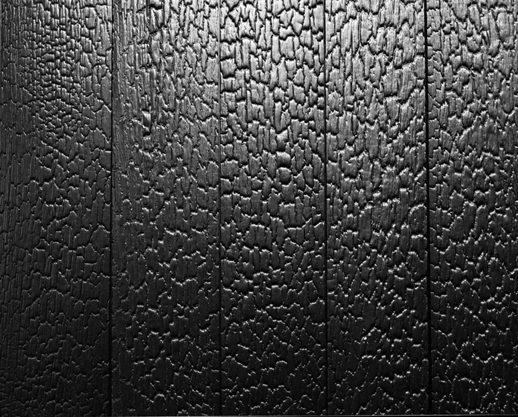 Die in der Variante EICHE gefertigtes Holzprofil wird verkohlt und dann imprägniert. Dadurch entsteht eine stark verkohlte Holzstruktur mit charakteristischen Rissen (die sogenannte “Alligatorenhaut”). Verkohlte Eichenholzprofile sind für Innenräume bestimmt.